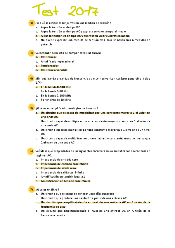 ELECTRÓNICA - EXÁMENES TIPO TEST