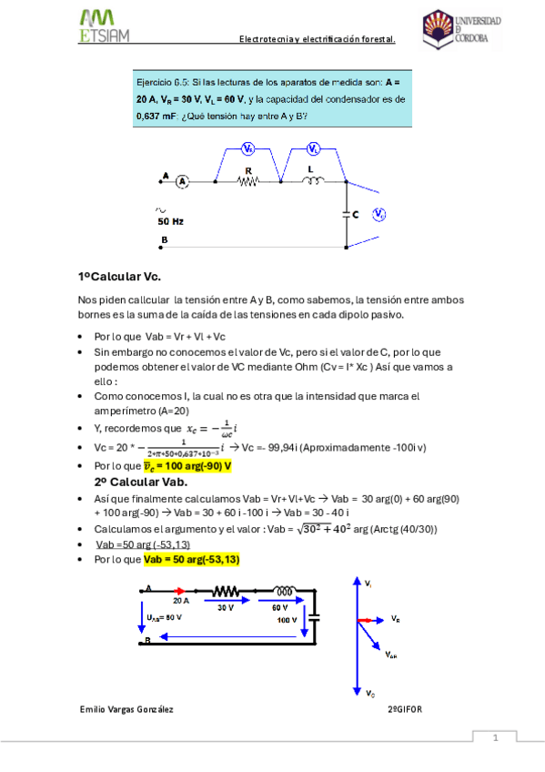 He publicado nuevos ejercicios de 2º Electrotecnia y Electrificación Forestal: Ejercicio-6.5-Monofasica-Explicado-Partes-1-y-2.pdf