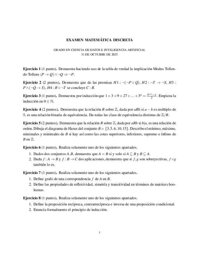 He publicado nuevos examenes de 1º Elementos de Matemática Discreta: Examen-Discreta-31102025.pdf