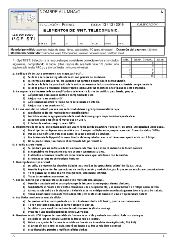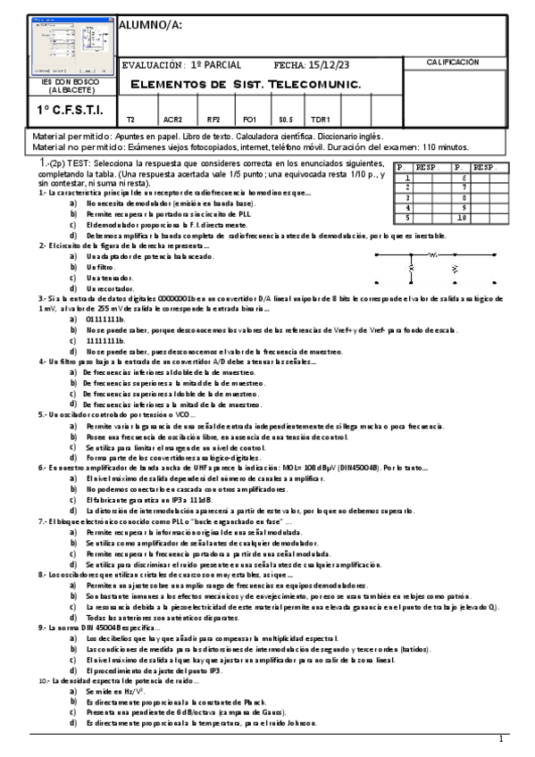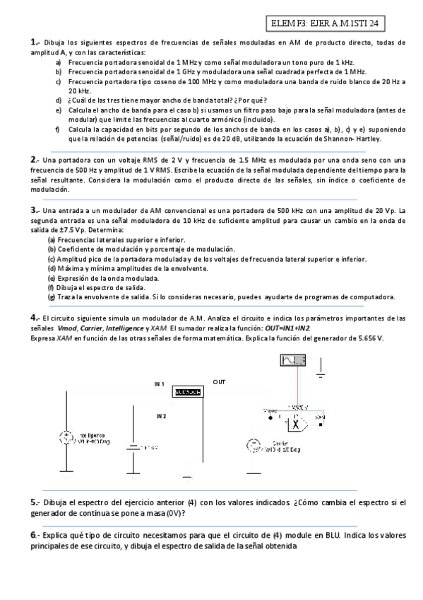 SON EJERCICIOS SIN COMPLETAR DE LOS ELEMENTOS DE SISTEMAS DE TELECOMUNICACIONES. EJERCICIOS SIN RESPUESTAS