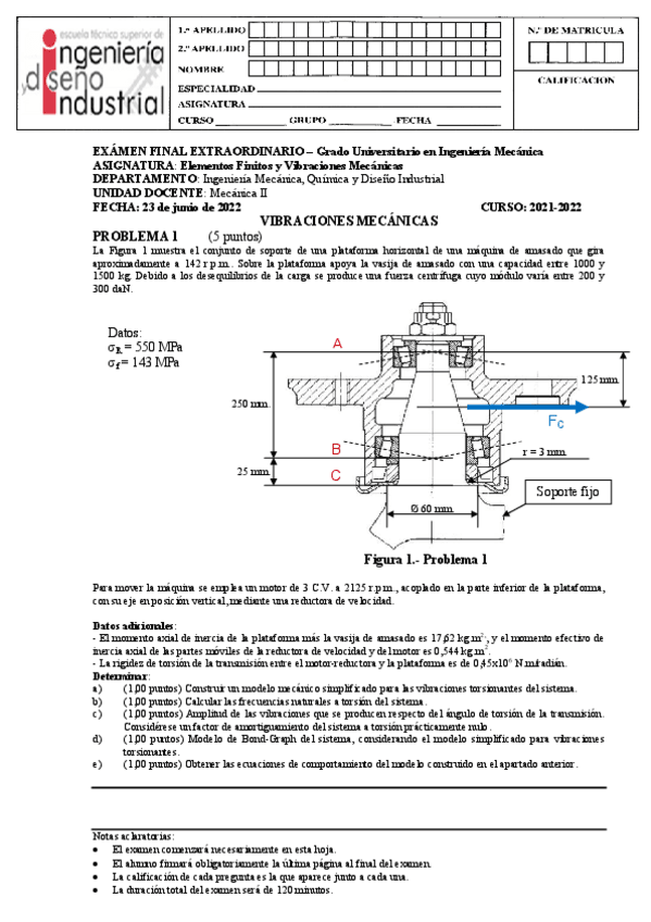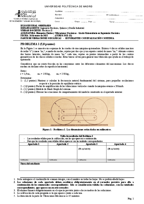 He publicado nuevos examenes de 4º ELEMENTOS FINITOS Y VIBRACIONES MECÁNICAS: vibraciones-parcial-2-2022.pdf