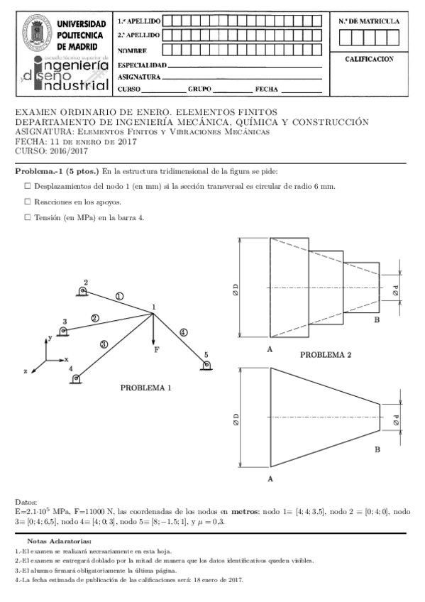 He publicado nuevos examenes de 4º ELEMENTOS FINITOS Y VIBRACIONES MECÁNICAS: ExamenENERO2022EEFF.pdf