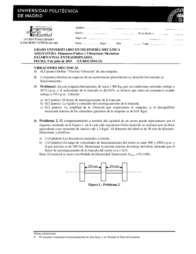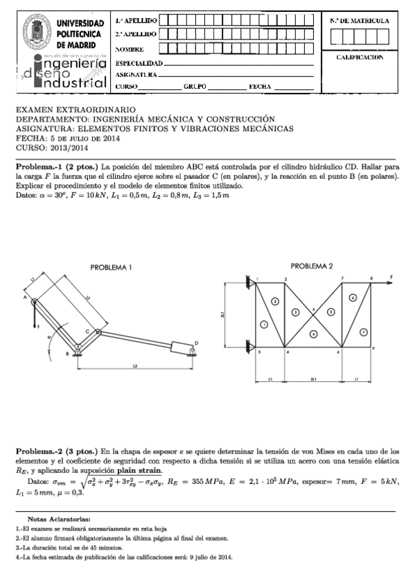 He publicado nuevos apuntes de 5º ELEMENTOS FINITOS Y VIBRACIONES MECÁNICAS: 2014-7-5ExamenFinalExtraresuelto.pdf