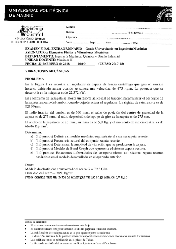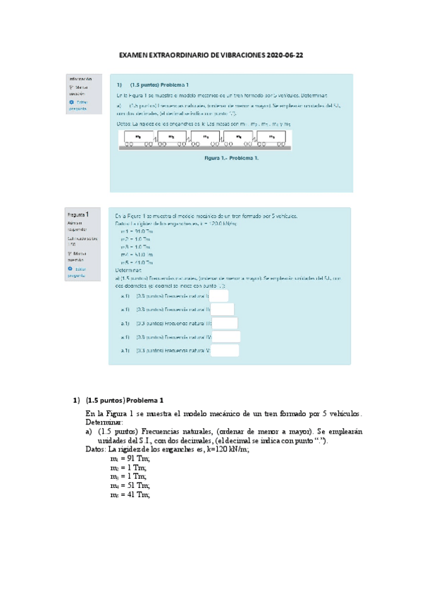 He publicado nuevos examenes de 4º ELEMENTOS FINITOS Y VIBRACIONES MECÁNICAS: Prueba-1-Moodle-vibraciones-2023.pdf