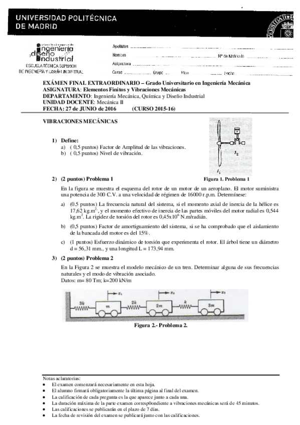 He publicado nuevos examenes de 4º ELEMENTOS FINITOS Y VIBRACIONES MECÁNICAS: ENERO2025VIBRACIONES.pdf