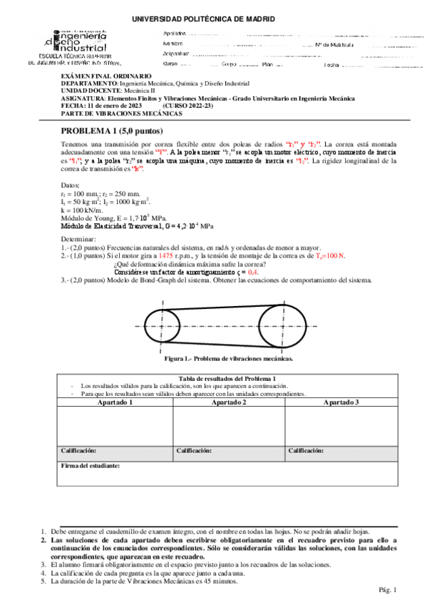 He publicado nuevos examenes de 4º ELEMENTOS FINITOS Y VIBRACIONES MECÁNICAS: EXAMEN JULIO 202223.pdf