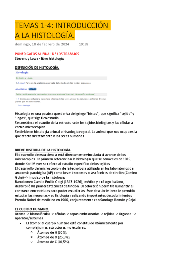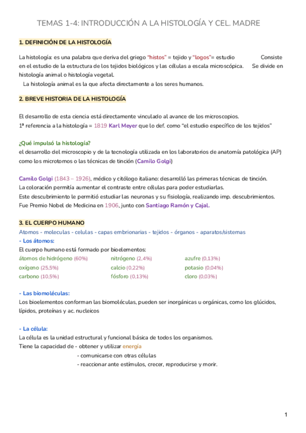 He publicado nuevos apuntes de 1º Embriología e Histología General: Temas-1-11.-Histologia.pdf