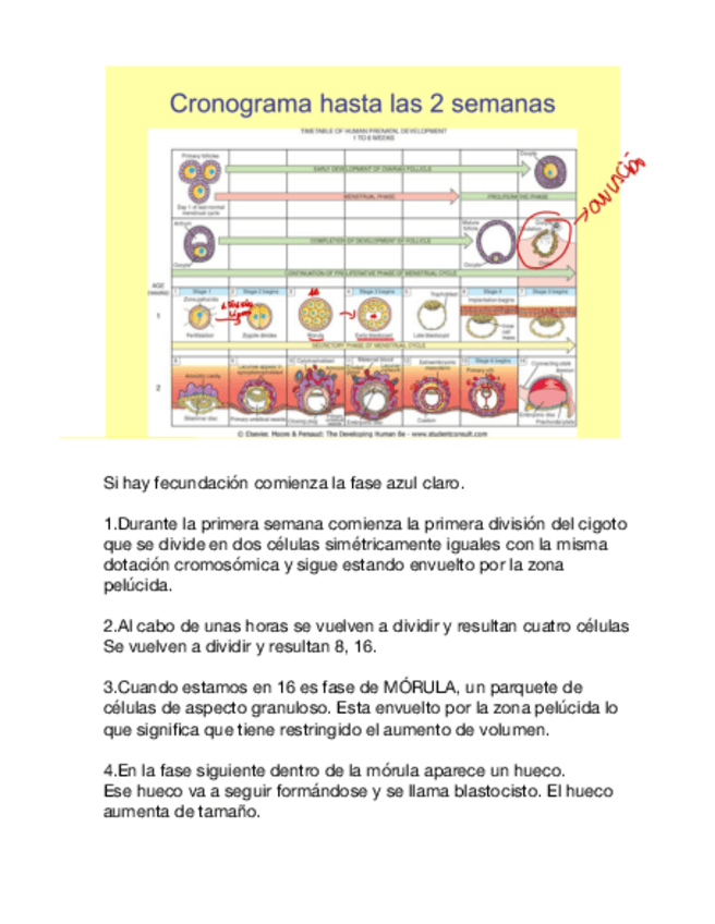 Desarrollo embrionario, trabajado para que se pueda entender de una manera más sencilla desde la 1ªsemana de desarrolo