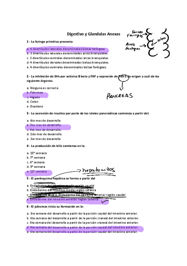 Examen de Embriología del Aparato digestivo y Glándulas anexas