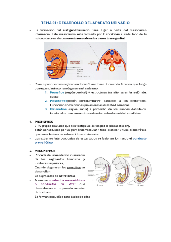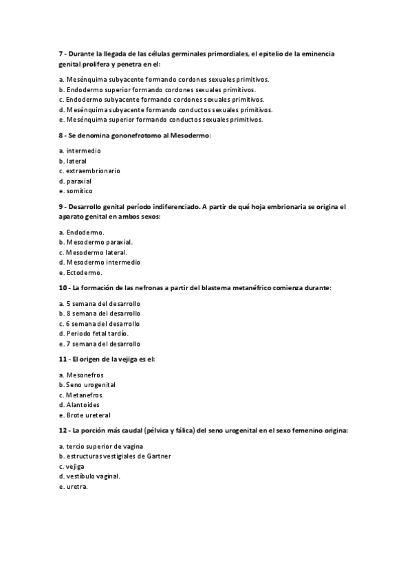 Examen de Embriología del Aparato Urogenital