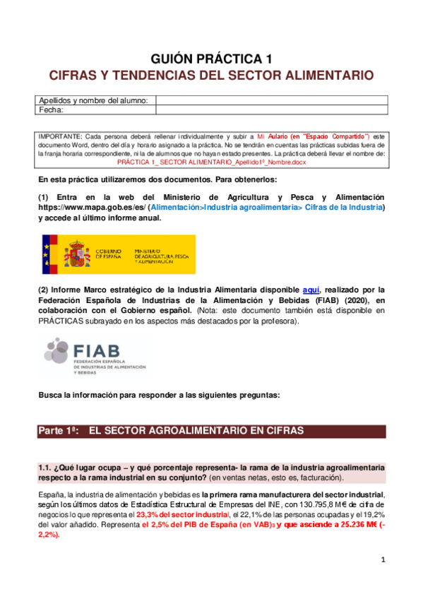 Práctica nº1 CIFRAS Y TENDENCIAS DEL SECTOR ALIMENTARIO