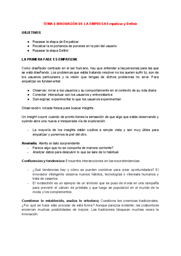 Apuntes TEMA 5 INNOVACIÓN DE LA EMPRESA Empatizar y Definir