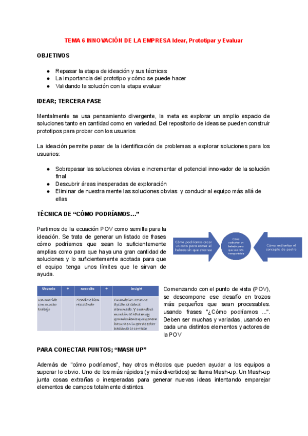 Apuntes TEMA 6 INNOVACIÓN DE LA EMPRESA Idear, Prototipar y Evaluar