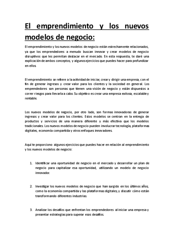 Emprendimiento y Nuevos Modelos de Negocio