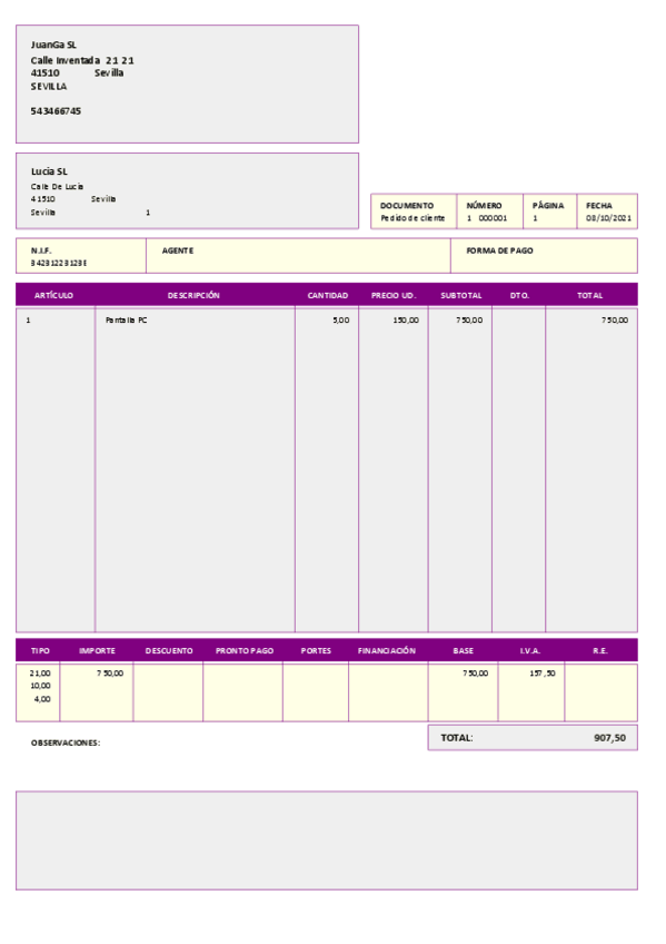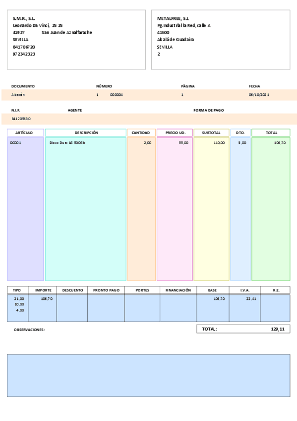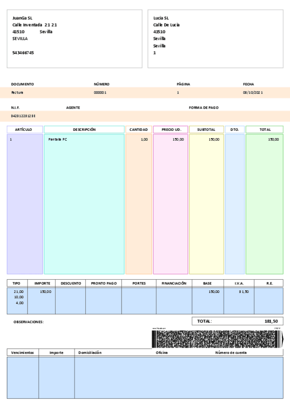 He publicado nuevos ejercicios de Empresa e iniciativa empresarial: Factura1.pdf