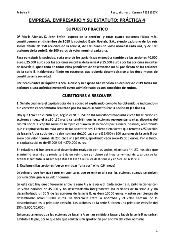 He publicado nuevos practicas de 4º Empresa, Empresario y su Estatuto: Formas de Organización de la Empresa: Prácticas resueltas 2021