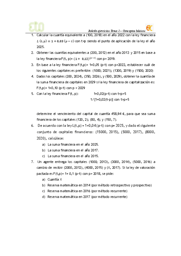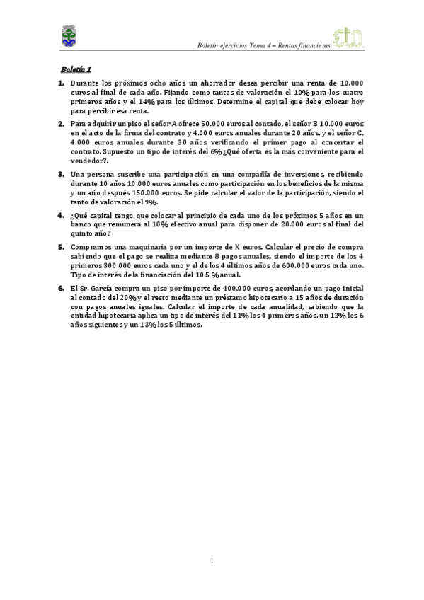 He publicado nuevos ejercicios de 1º Empresa: Matemática de las Operaciones Financieras: TEMA 1