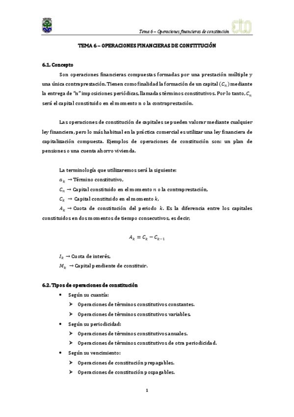 Tema 6 -Operaciones financieras de constitución