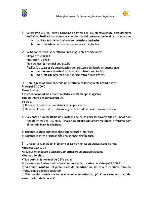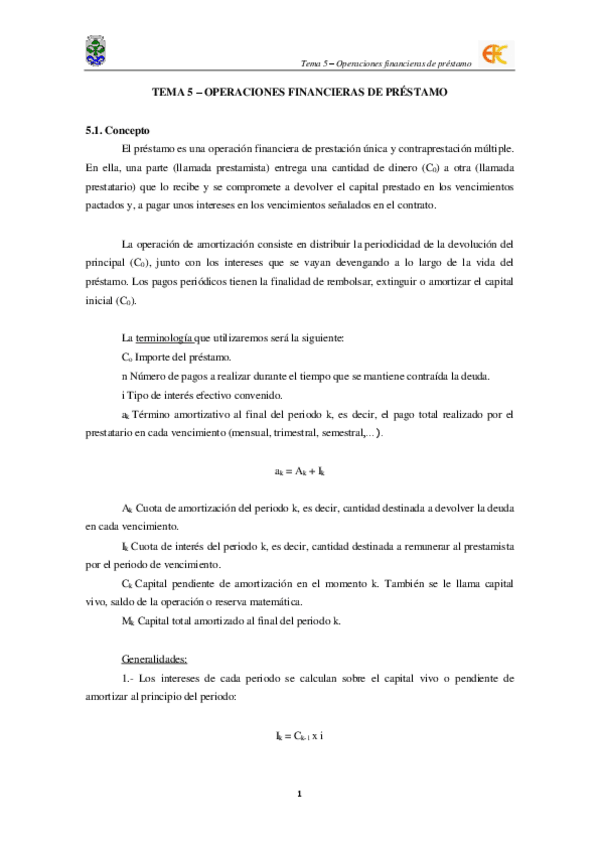 Tema 5 - Operaciones financieras de préstamo
