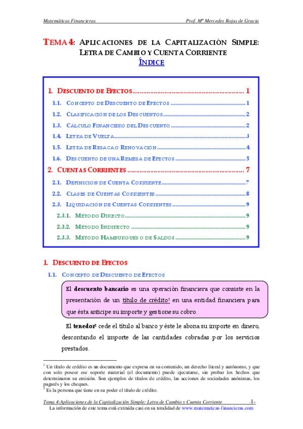 APLICACIONES DE LA CAPITALIZACIÓN SIMPLE: LETRA DE CAMBIO Y CUENTA CORRIENTE