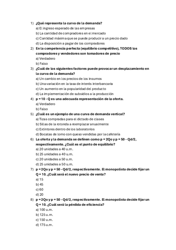 Ejercicios de competencia perfecta y monopolio