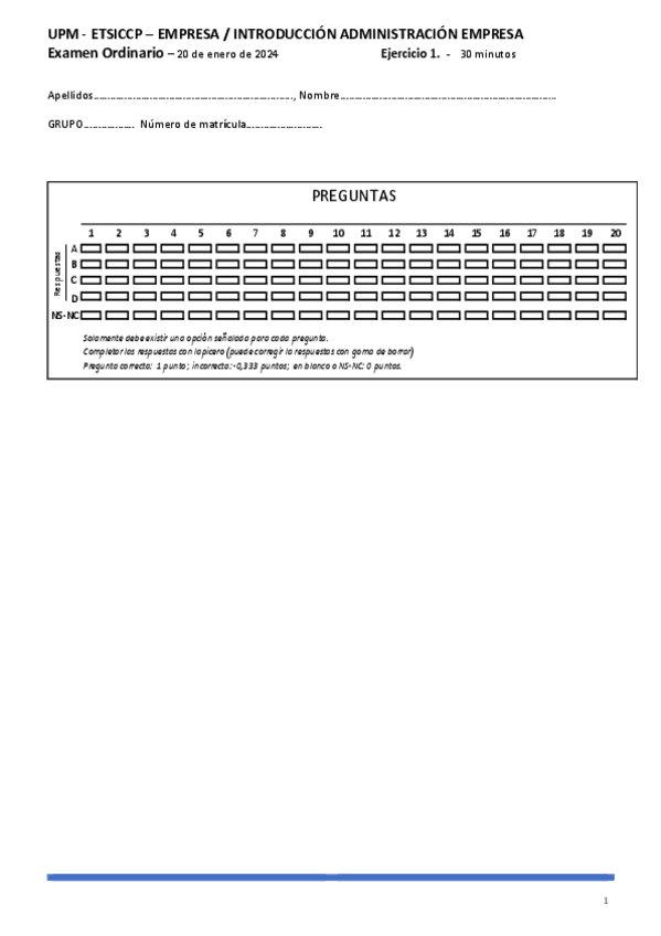 He publicado nuevos examenes de 1º Empresa: Enunciado-ejercicio1-test.pdf