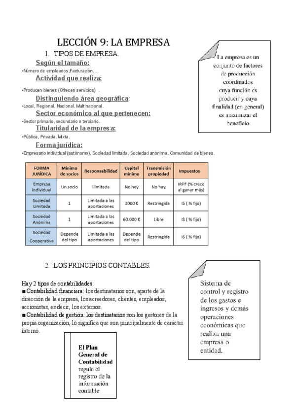 He publicado nuevos apuntes de 1º Empresa: Apuntes completos