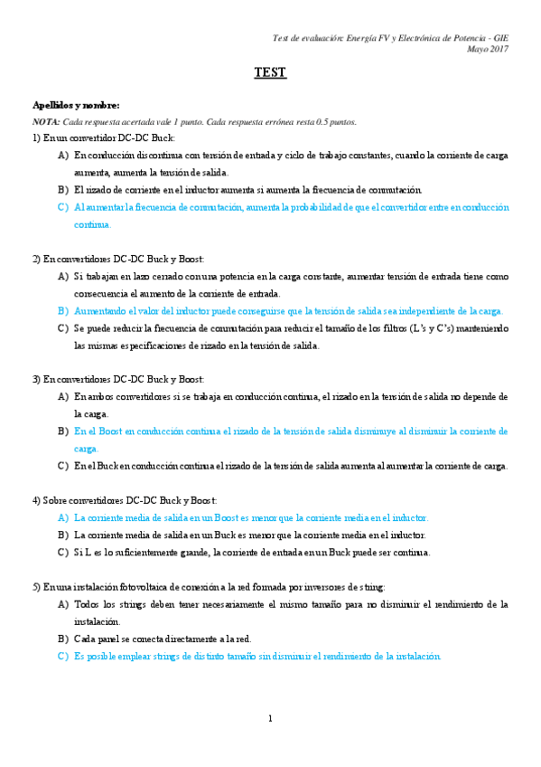 He publicado nuevos examenes de 3º Energía Fotovoltaica y Electrónica de Potencia: Test-Parcial1Marzo2017-RESUELTO.pdf