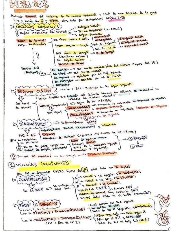 Resumen esquemático de los conceptos más importantes del tema de Hernias
