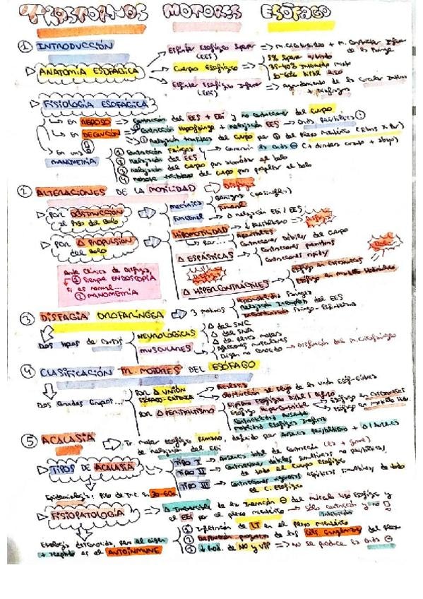 Resumen esquemático de los conceptos más importantes del tema de Trastornos Motores del Esófago