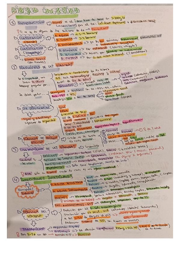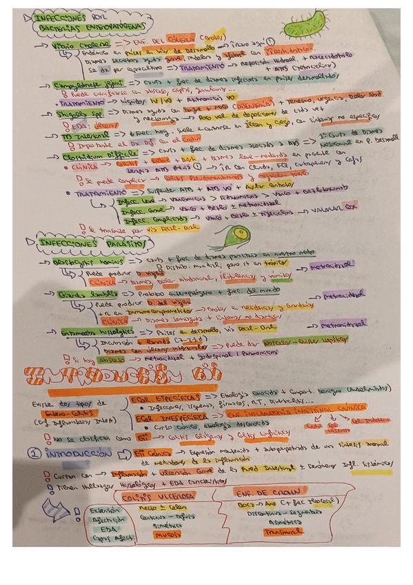 Resumen esquemático de los puntos más importantes del tema de diarrea infecciosa e introducción a la EII