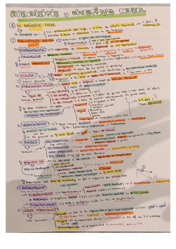 Resumen esquemático de los puntos más importantes del tema de apendicitis y divertículo de Meckel