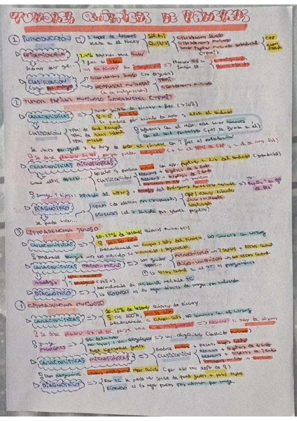 Resumen esquematizado de los principales puntos del tema de tumores quísticos de páncreas