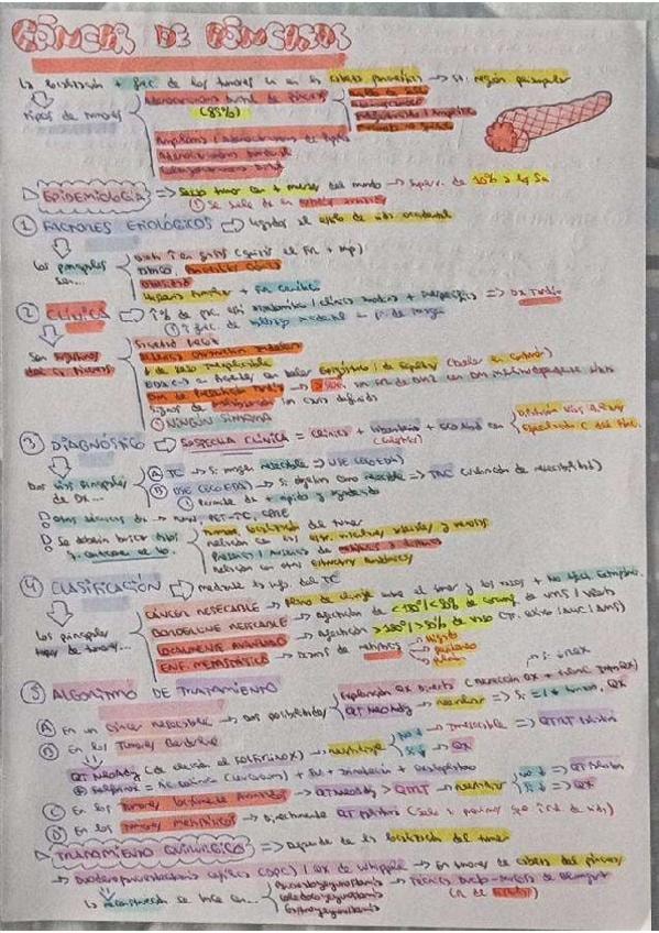 Resumen esquematizado de los principales puntos del tema de cáncer de páncreas