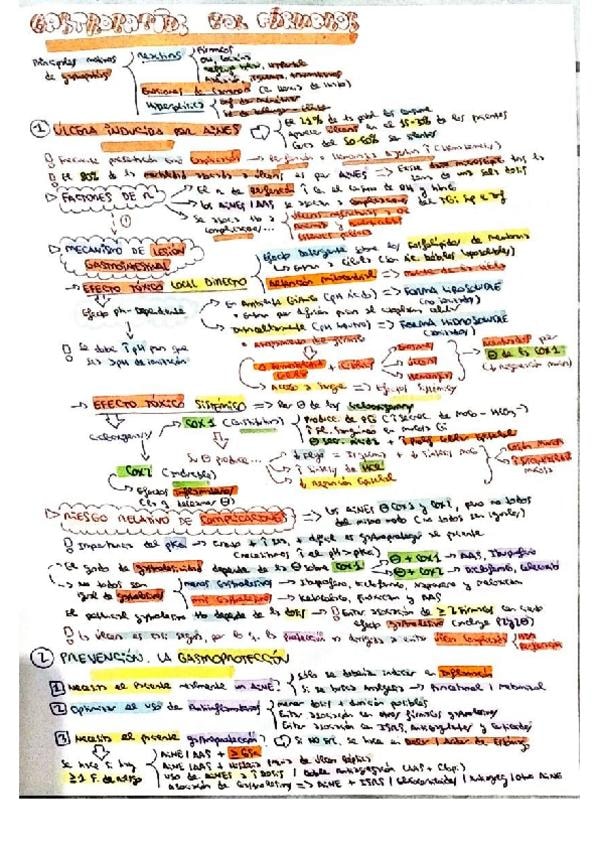 Resumen esquemático de los puntos principales del tema de gastropatía por fármacos