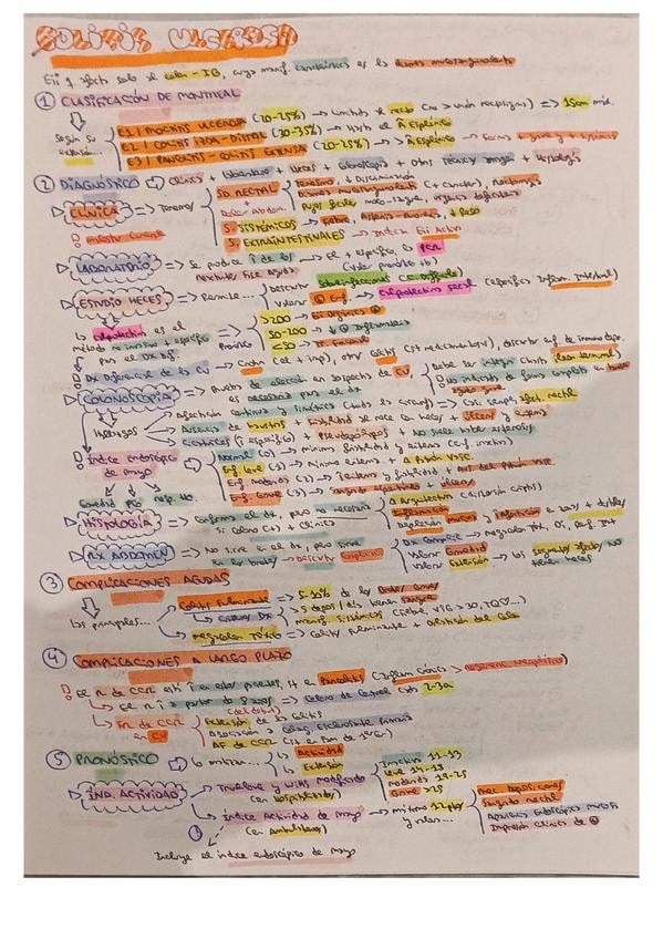 Resumen esquemático de los puntos principales del tema de colitis ulcerosa