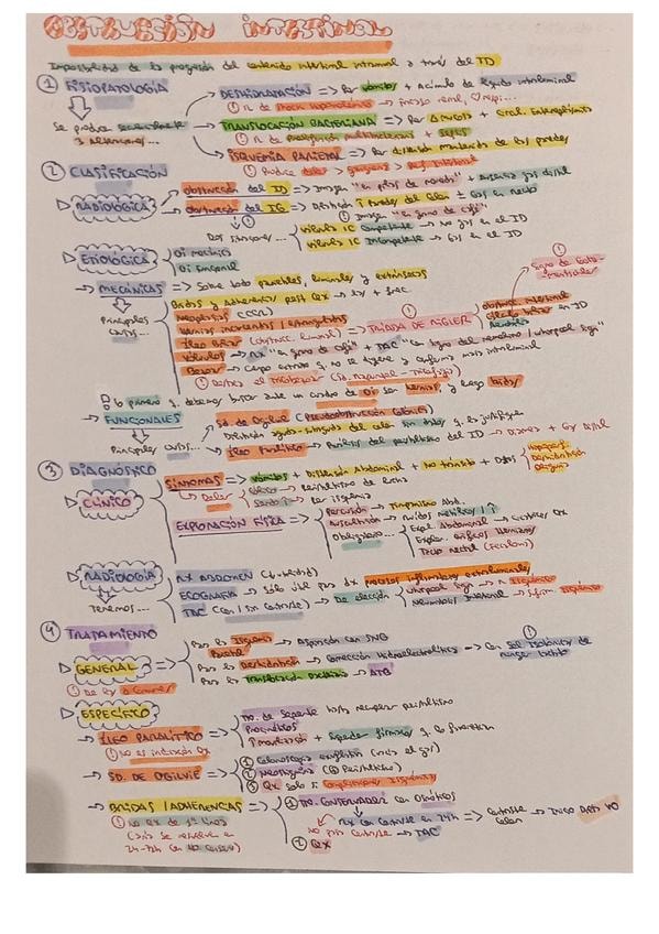 Resumen esquemático de los puntos principales del tema de obstrucción intestinal