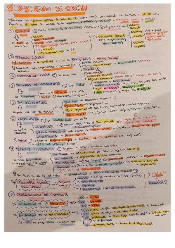 Resumen esquemático de los puntos más importantes del tema de enfermedad de Crohn