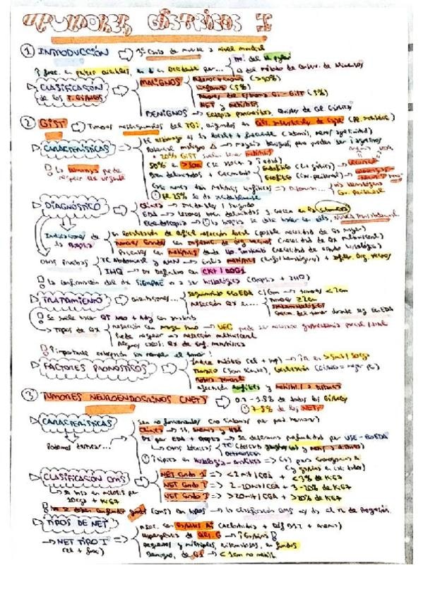 Resumen esquemático de los puntos más importantes del tema de tumores gástricos I