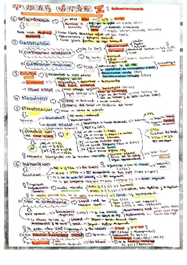 Resumen esquemático de los puntos más importantes del tema de tumores gástricos II (adenocarcinoma de estómago)