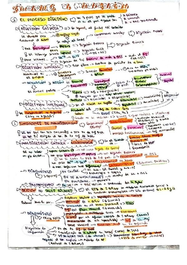 Resumen esquemático de los puntos más importantes del tema de síndromes de malabsorción