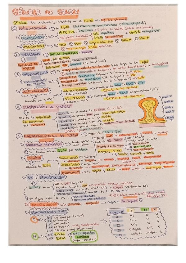 Resumen esquemático de los puntos más importantes del tema de cáncer de colon