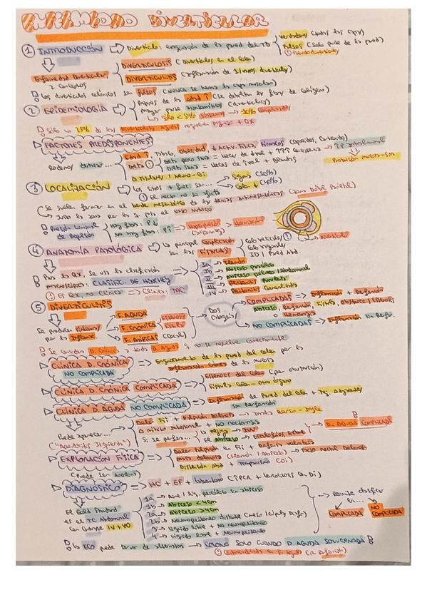 Resumen esquemático de los puntos más importantes del tema de enfermedad diverticular