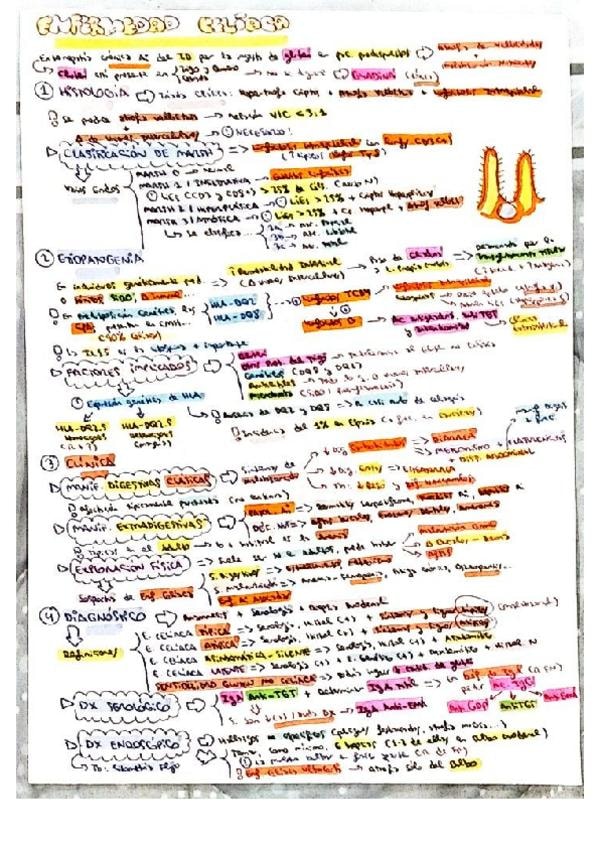 Resumen esquemático de los puntos más importantes del tema de enfermedad celíaca