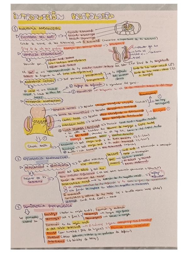 Resumen esquemático de los puntos más importantes del tema de introducción a la proctología