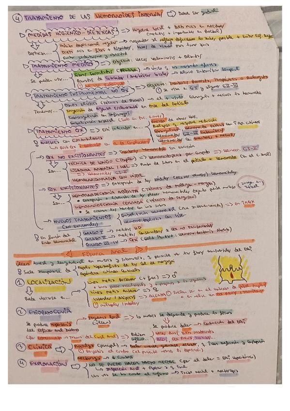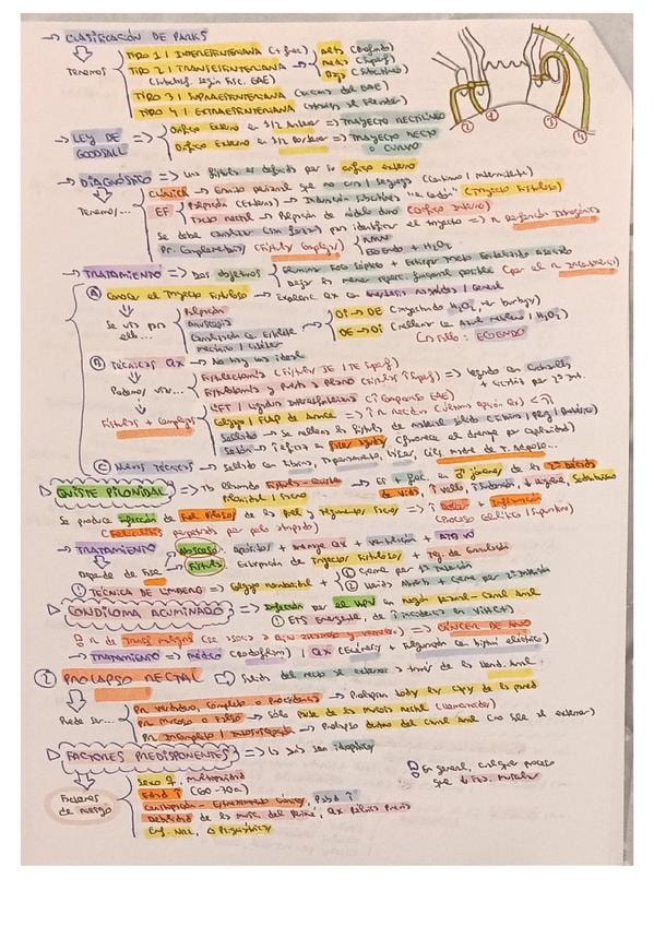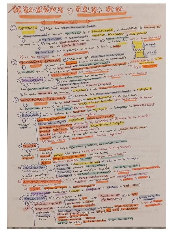 Resumen esquemático de los puntos más importantes del tema de proctología I (hemorroides y fisura anal)