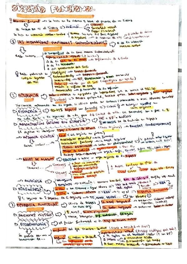 Resumen esquemático de los puntos más importantes del tema de dispepsia funcional