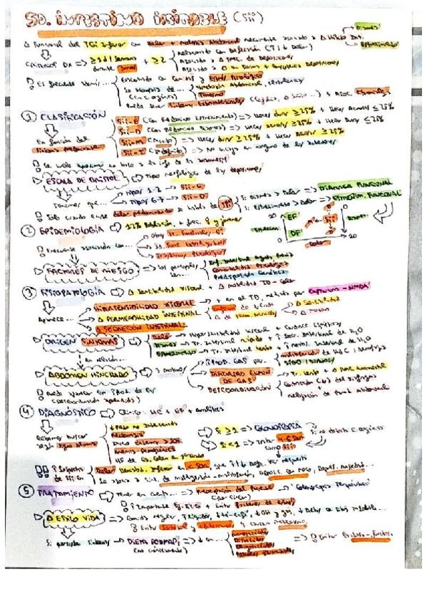 Resumen esquemático de los puntos más importantes del tema del síndrome de intestino irritable