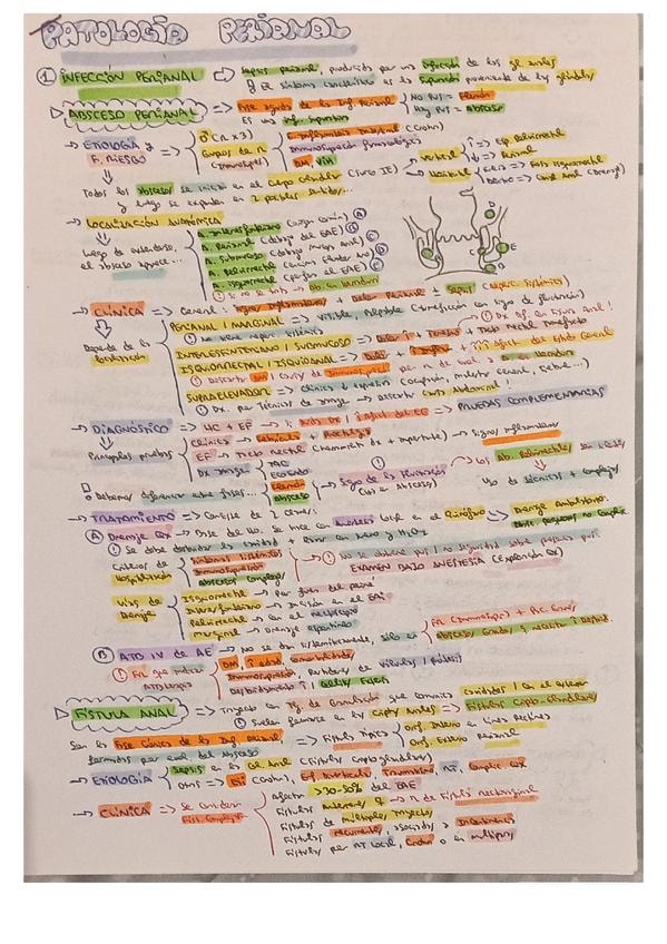 Resumen esquemático de los puntos más importantes del tema de proctología II (patología perianal e incontinencia anal)