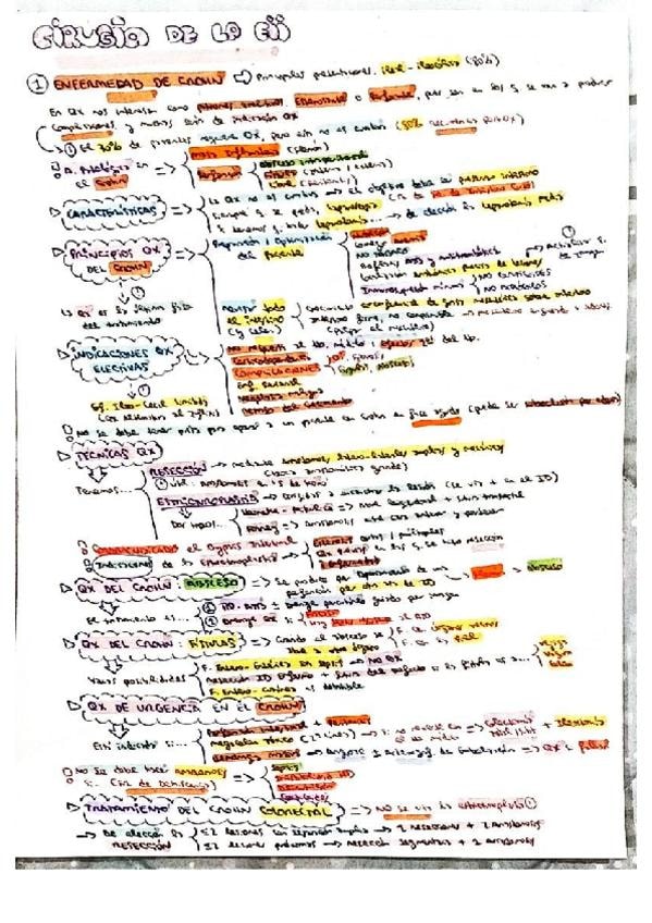 Resumen esquemático de los puntos más importantes del tema de cirugía de la EII (Crohn y Colitis)